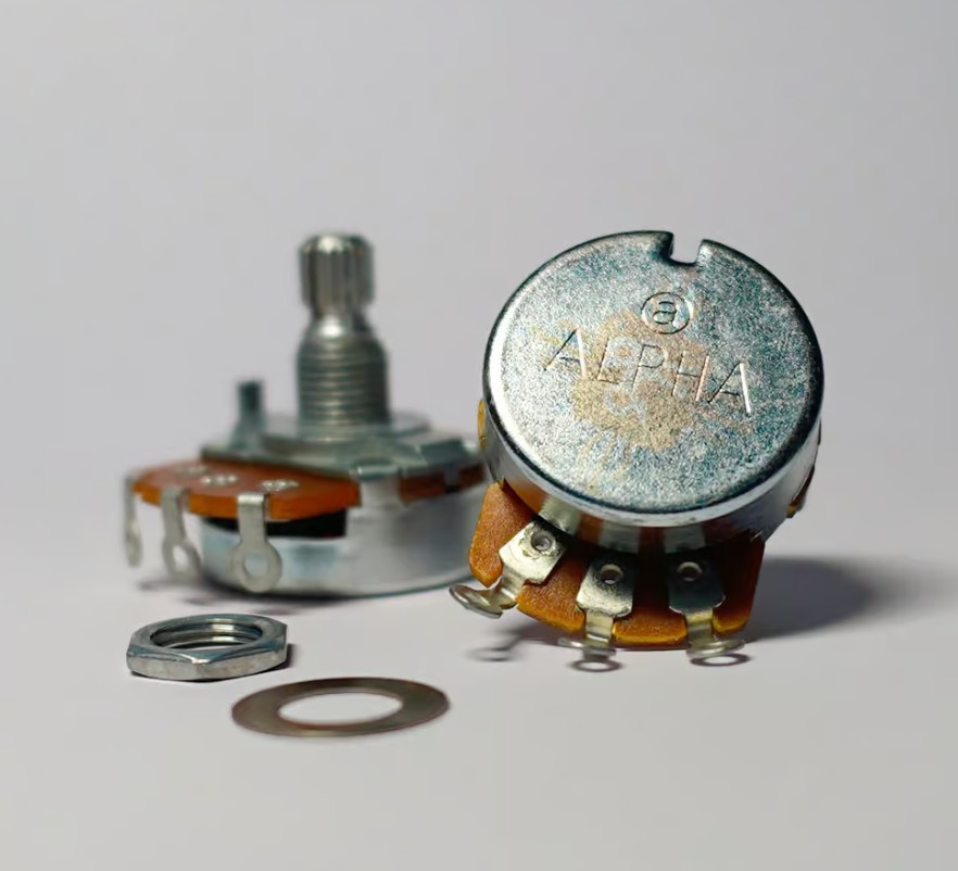 This is Taiwan Alpha Make B500K Split Shaft Potentiometer straight from the factory for Premium Guitars and Amplifiers.