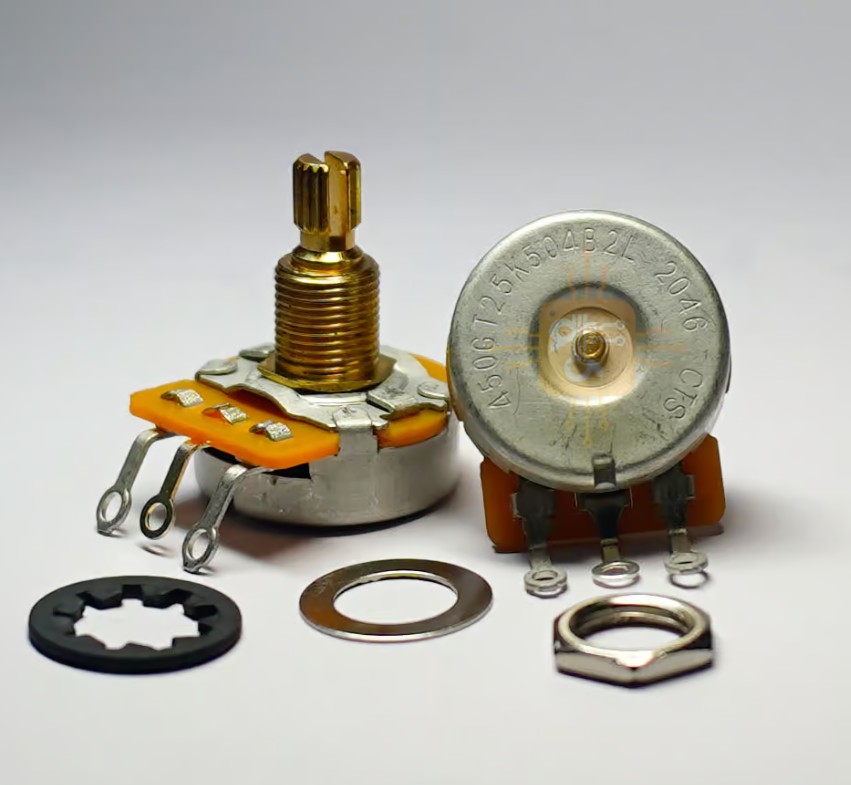 This is CTS B500K Split Shaft Potentiometer straight from the factory for Premium Guitars and Amplifiers. This potentiometer is made with Brass and by the legendary Pot maker CTS.