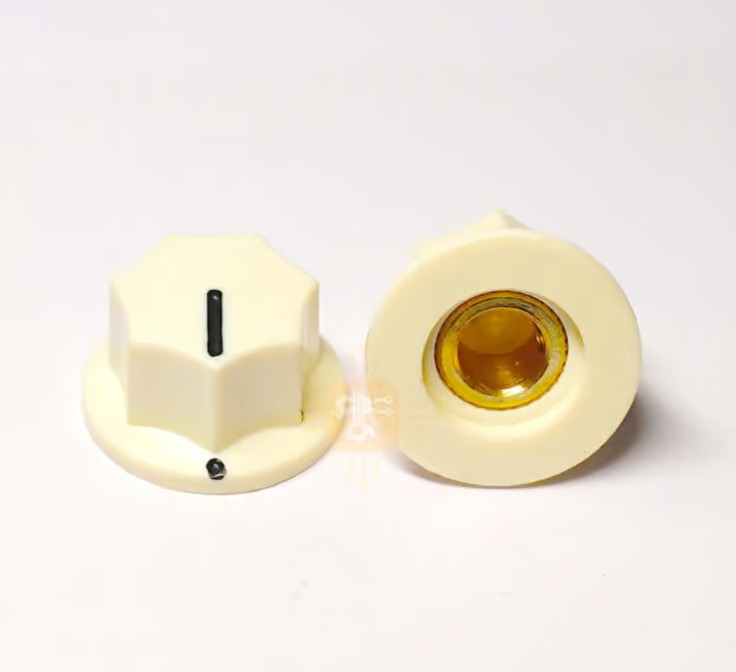 The famous MXR style 6.35mm knob in Ivory color. It is the sturdy MXR series knob for used in guitars, pedals, effect pedals or in Amplifiers. This the Ivory Color one. It is also called as MXR style Jazz Bass Knob 6.35mm – Ivory color.