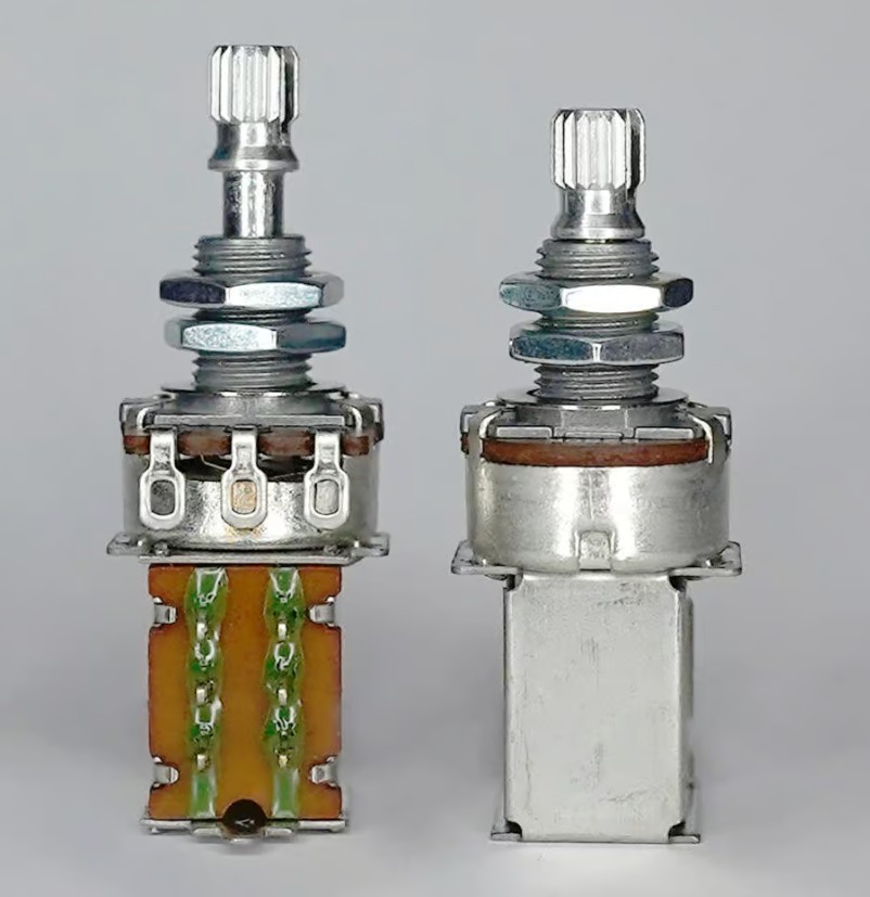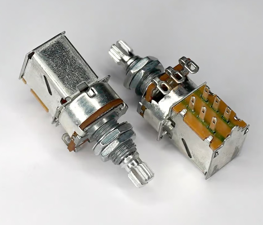 This is  A250K push pull Log Pot Split Shaft Potentiometer straight from the factory for Premium Guitars and Amplifiers. This Potentiometers are made with Aluminum. It is analog audio taper Potentiometer with Push Pull dual function and DPDT (Double Pole Double Throw) ON-ON / ON-OFF switch