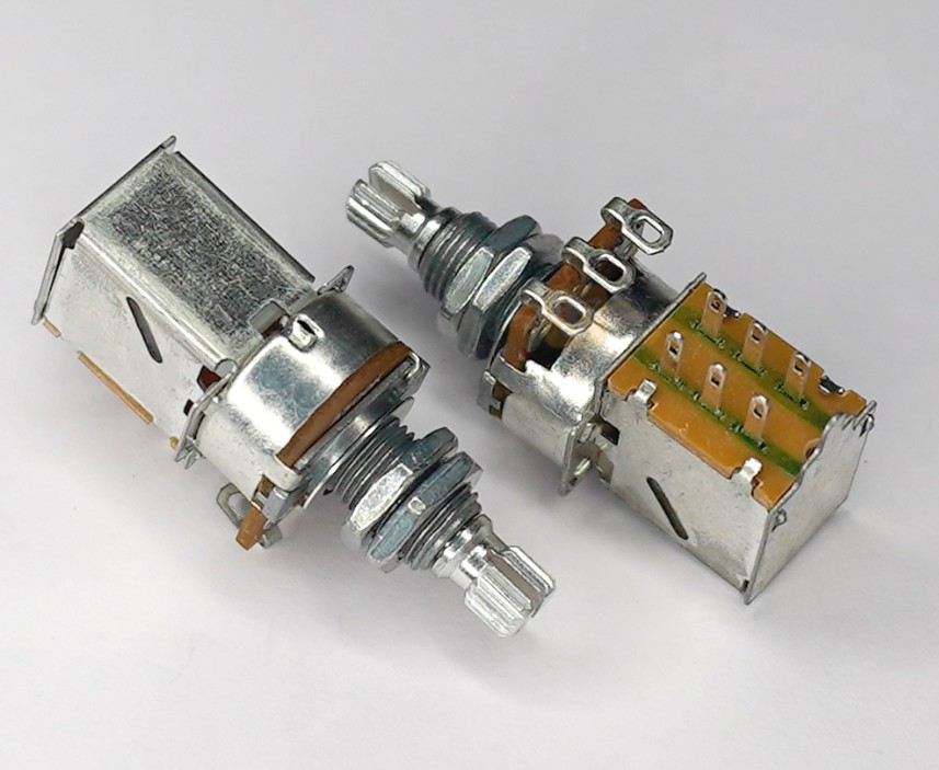 This is A500K push pull Log Pot Split Shaft Potentiometer straight from the factory for Premium Guitars and Amplifiers. This Potentiometers are made with Aluminum. It is analog audio taper Potentiometer with Push Pull dual function and DPDT (Double Pole Double Throw) ON-ON / ON-OFF switch